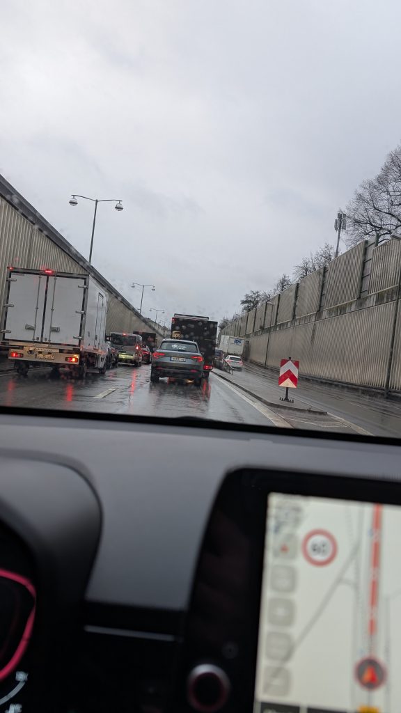 Doch dann erschien die Erlösung im Rückspiegel: Ein roter VW Passat Kombi. Der Archetyp des deutschen Firmenwagens. Ich erkannte sofort eine exzellente Management-Gelegenheit und tat das, was jeder gute Stratege tut – ich delegierte die Drecksarbeit. Kurzer Schlenker nach rechts, den Passat von der Leine lassen und mich genüsslich als VIP-Zuschauer in seinen Windschatten hängen.